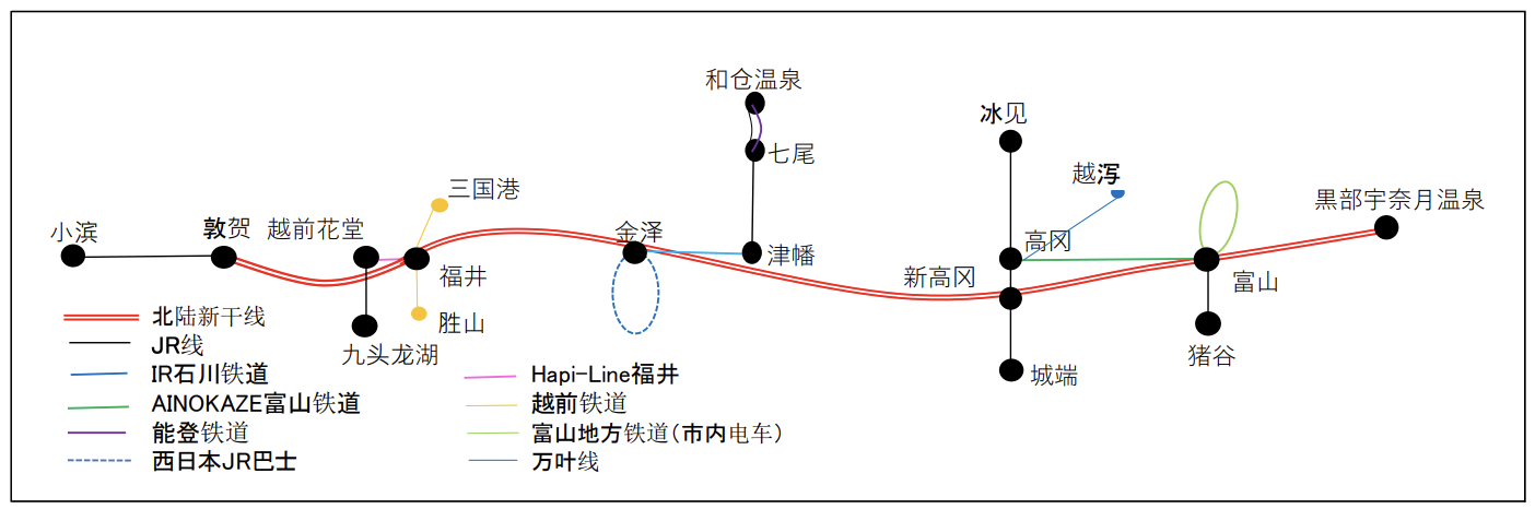 北陆地区铁路周游券本地图上之有效区域乘车不受限制。