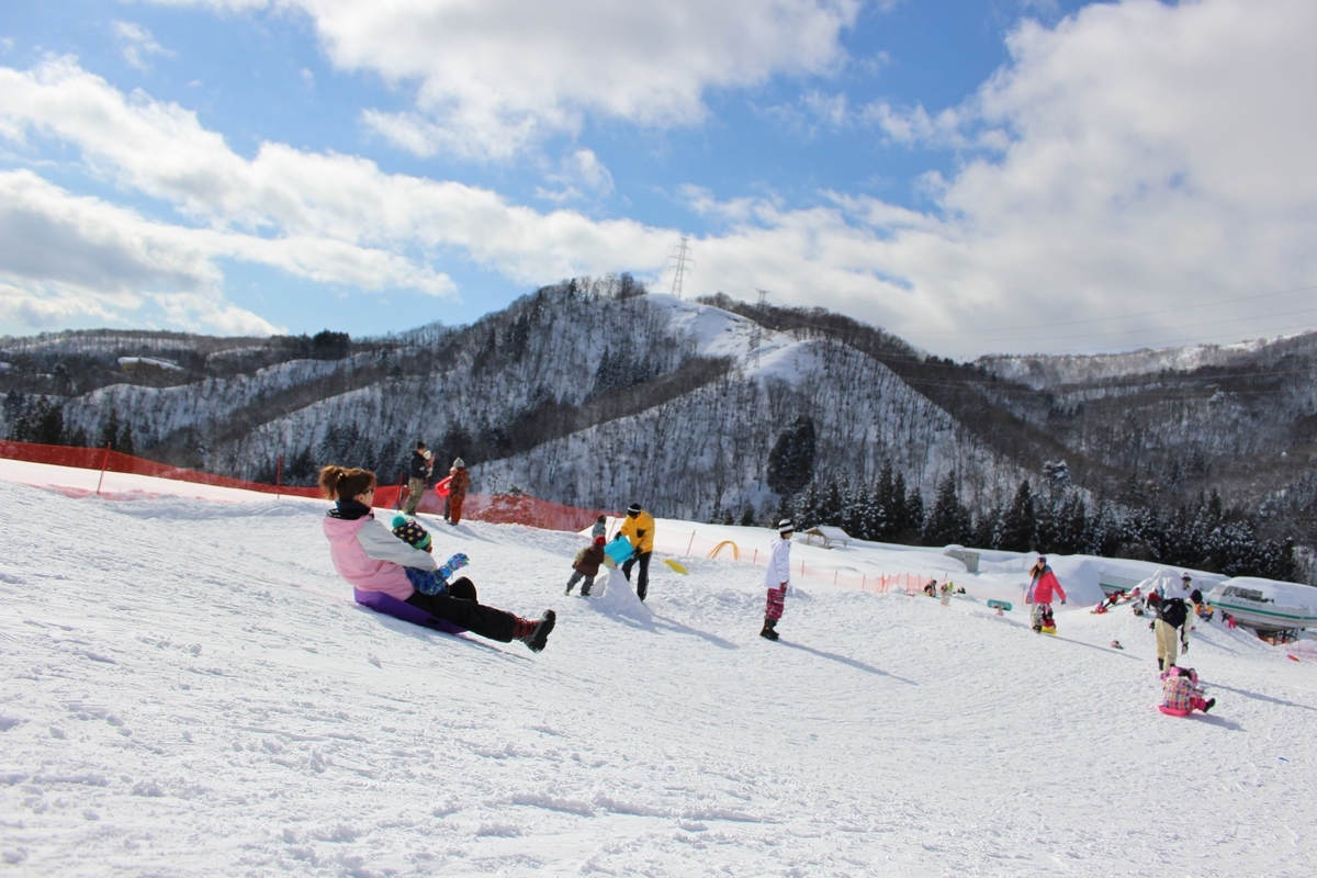 零经验的初学者在这里不仅能玩得尽兴,还能学到单板、双板的基础滑雪技巧,因此非常推荐给大家。另外滑雪场的山脚下还有一座能享受玩雪乐趣的儿童乐园。在这里,和小朋友一起乘坐雪橇享受滑雪吧。