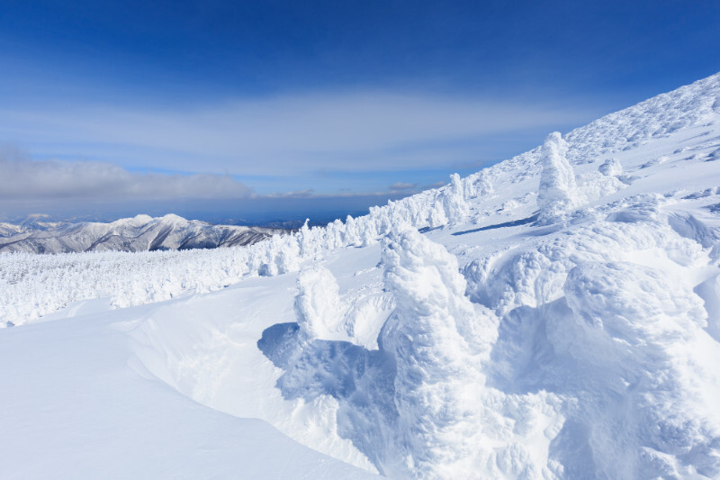 但是在这间适合初学者练习滑雪的「藏王LIZA WORLD滑雪场」里最不能忘记做的是能够近距离欣赏奇幻树冰群的「树冰观赏」。因为被雪覆盖的树木长得就像怪物一样,因此又被称做雪中怪兽。