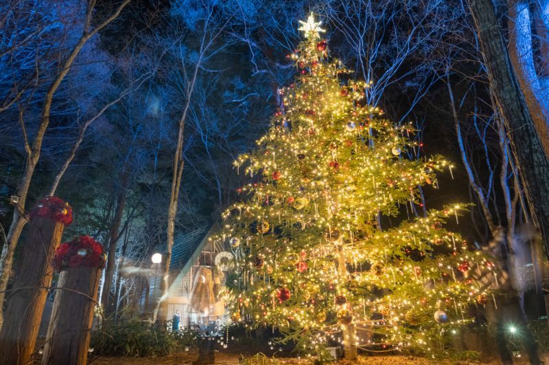 「轻井泽高原教会」的圣诞烛光之夜,是个能推荐给所有人的神圣庄严的灯饰活动。作为轻井泽代表的活动,毎年都吸引许多观光客前来非常热闹。在教会前面设置有高度达6m的巨大圣诞树,由无数的蜡烛灯笼及灯饰照映的森林极具梦幻的气氛。