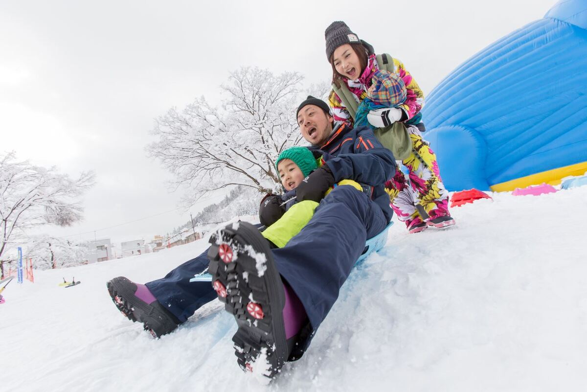 乐园的门票为1天500日圆,里面有充气溜滑梯、附方向盘的雪橇、雪上滑步车等多样好玩的雪上与游乐项目,可让您和孩子尽情畅玩一整天。