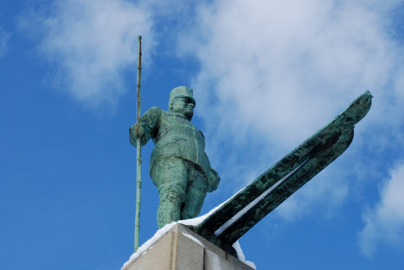 滑雪发祥地的纪念碑,少将的铜像以及纪念馆都建在与滑雪场相邻不远之处。