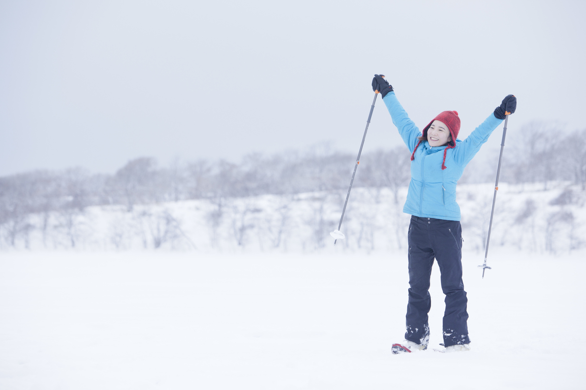 首先要介绍的户外活动是「雪鞋&雪地健行」。雪鞋是指在雪上步行专用的鞋子。穿着这种雪鞋于雪山内行走,便是所谓的雪地健行。如果穿着一般的雪靴,脚部会陷入雪中,但穿着雪鞋则能随心所欲地在雪上走动。