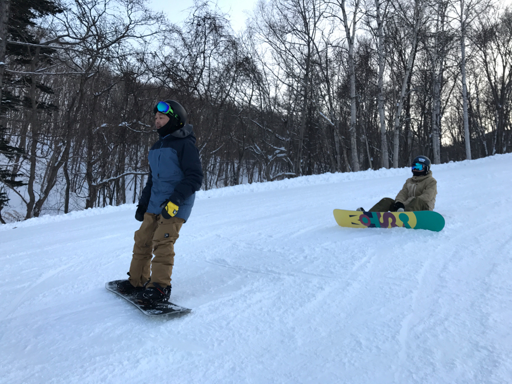 即使如此,初次尝试单板滑雪还是很可怕。正因如此,建议大家刚开始尽量在平坦的场地练习。教朋友时也要尽可能地选择方便练习的平缓坡面喔!