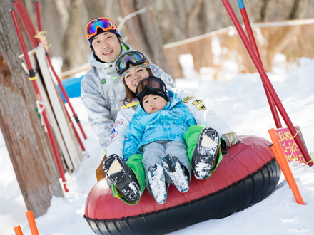 本广场适合想要和孩子们一起滑雪的家庭游客!为首次挑战滑雪场的孩子们所准备的本广场,设有橡胶制的雪杆与圆拱等物品。