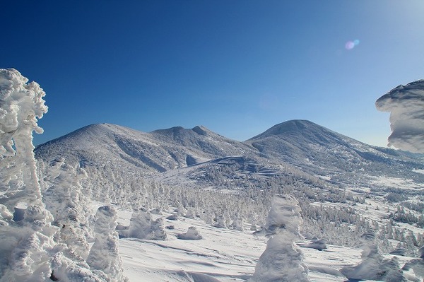 滑雪场以索道缆车山顶公园站所在的田茂萢岳山为起点,由数条雪道构成,滑行距离长达5km。可以一边欣赏辽阔壮丽的树冰美景,一边享受在优良雪质上滑行的爽快感。适合中、高等级的滑雪爱好者。