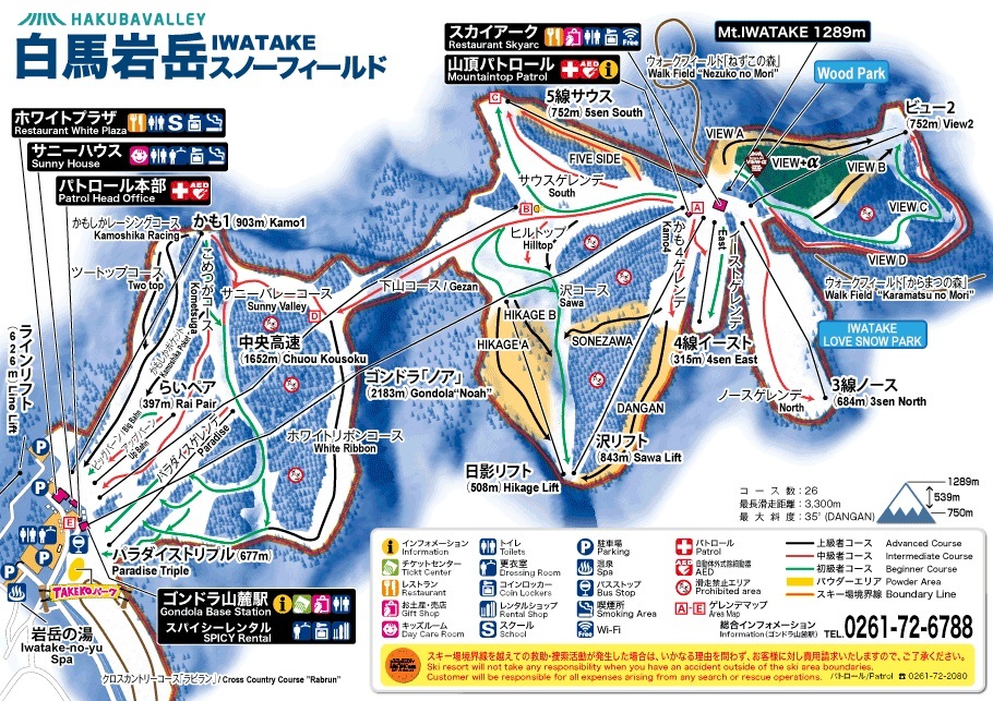 拥有360度全景视野,可俯瞰广阔的北阿尔卑斯(飞驒山脉)山。充分利用丰富自然地形打造的雪道,数量多达13条路线,遍布全山东南西北!即使是初学者也可以乘坐缆车登上海拔1,289米的山顶,一边欣赏美景一边滑行。还有深受高级玩家喜爱的非压雪雪道和林间道所在的粉雪区!以及初级到中高级玩家都可以挑战的单板公园,徒步登山滑雪和踏雪鞋、雪地越野车、雪地游乐区等多种游乐体验!山顶咖啡厅露台可以俯瞰北阿尔卑斯山美景,同时品尝新鲜出炉的面包。