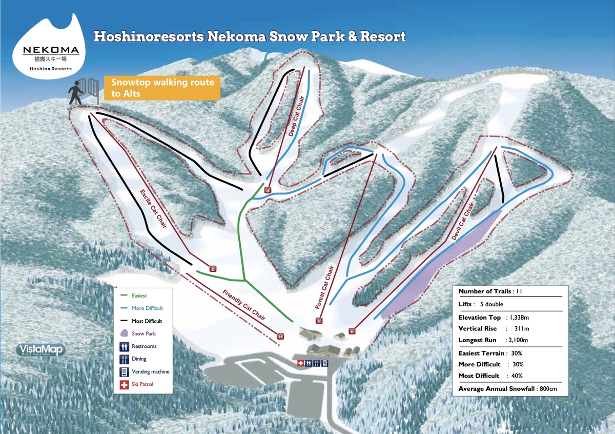 星野度假村NEKOMA Mountain滑雪场(前身为ALTS磐梯&猫魔滑雪场)是横跨猫魔山南北两面的国内最大规模滑雪场(之一)。