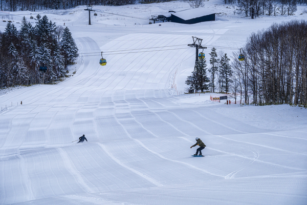 设有魔毯的初学者公园。非常适合在搭乘缆车上山前进行滑行练习!可穿着滑雪板直接搭乘魔毯移动至雪道上方,轻松滑行不费腿!