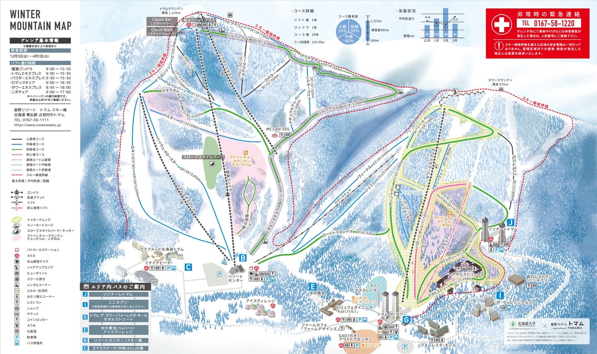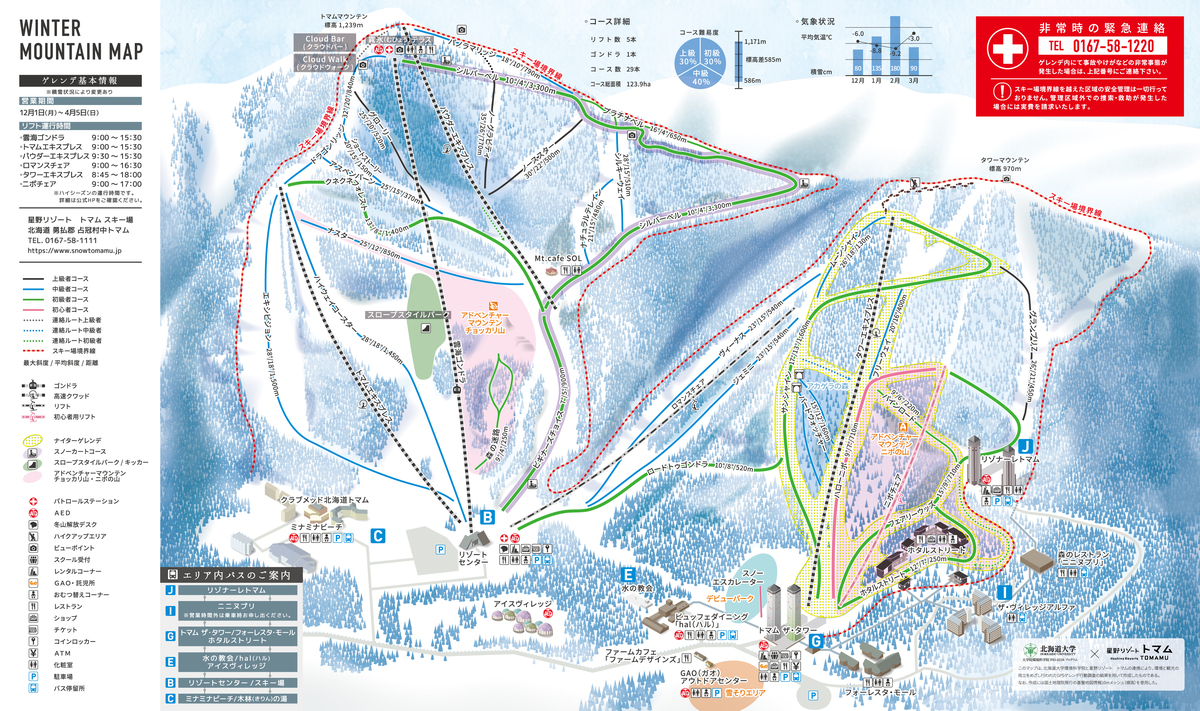 TOMAMU坡面障碍技巧公园: 北海道唯一分级设置雪道的滑雪公园,能够让双板及单板滑雪爱好者更加安全地起跳、游玩。