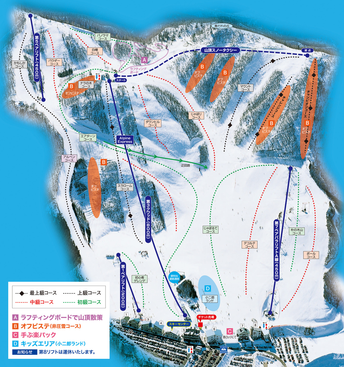 | 双板滑雪套装(双板滑雪板・双板鞋・雪杖) 金额因租借店而异。详情请确认官网。 | 成人 | ¥ 181.1 |