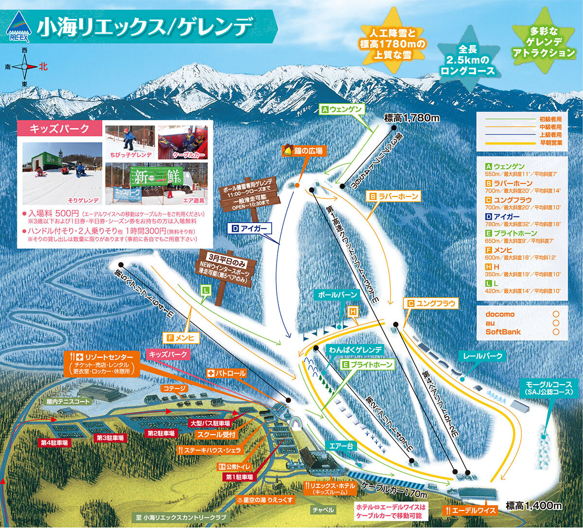 由CHATERAISE Ski Valley经营的正宗家庭度假村!共设有7条雪道,最大斜度32°,最长2.5km,除了丰富多彩的雪道之外,还设有各种游乐设施。无论是家庭游客还是年长者都可以乐在其中。同时还设有度假酒店和天然温泉。