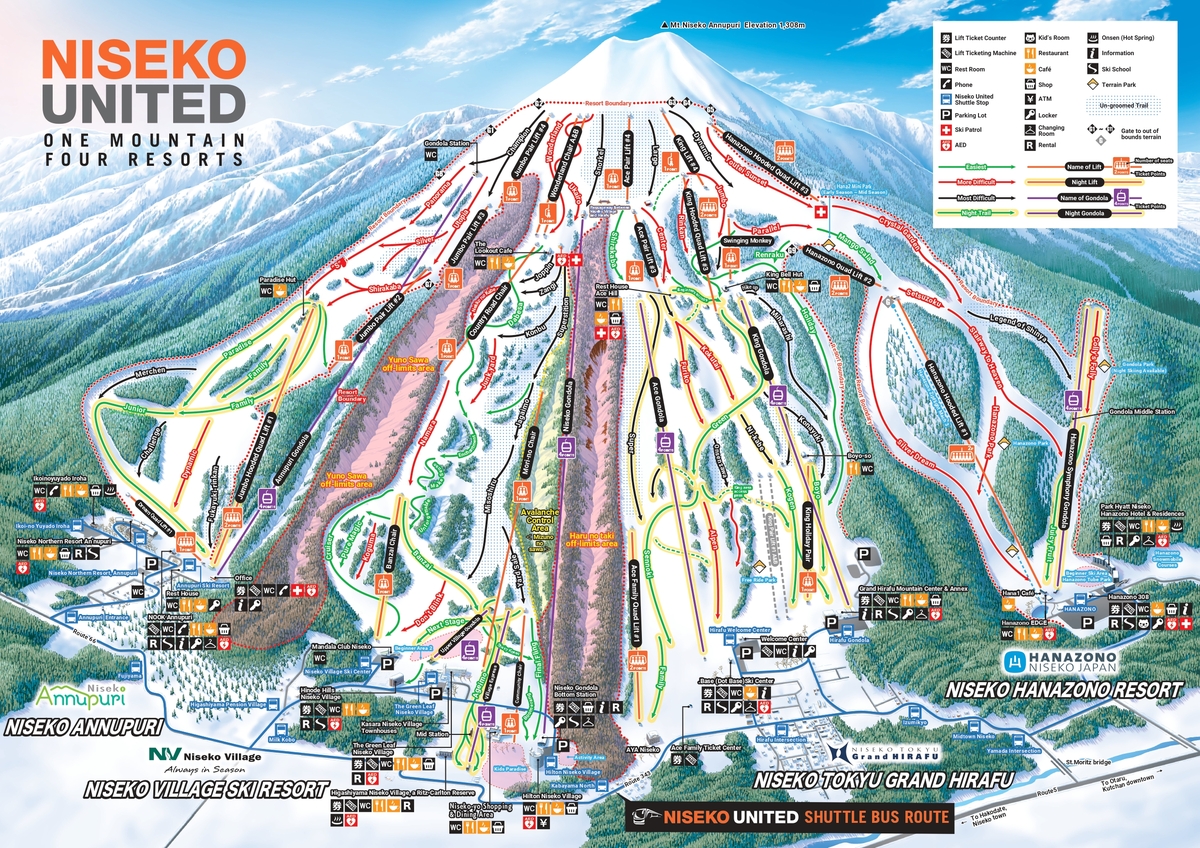 日本最大规模的地形滑雪公园(Terrain Park)。整个雪季都会在雪场中加入新的设施,改变原有布局。无论来多少次都会有新的挑战!