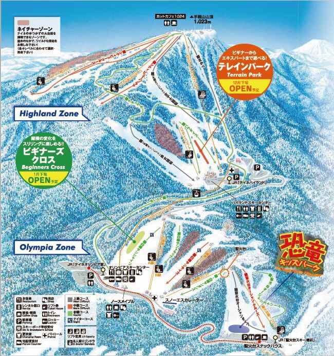 【Highland滑雪中心】除缆车券售票处、餐厅、商店、租借店、邮寄服务、投币式储物柜和更衣室之外,还有托儿室、包间。此外,设有可脱去雪靴、充分放松的付费休息室K-Lounge,以及滑雪季会员专用储物柜等,可谓高原区内应有尽有的滑雪中心。4F为通往雪区的出口。【奥林匹亚滑雪中心】内设有缆车券售票处、餐厅、商店、租借店,宅配服务、投币式储物柜、更衣室,以及滑雪学校办理处、哺乳室等,为家庭滑雪客或滑雪初学者提供便利。