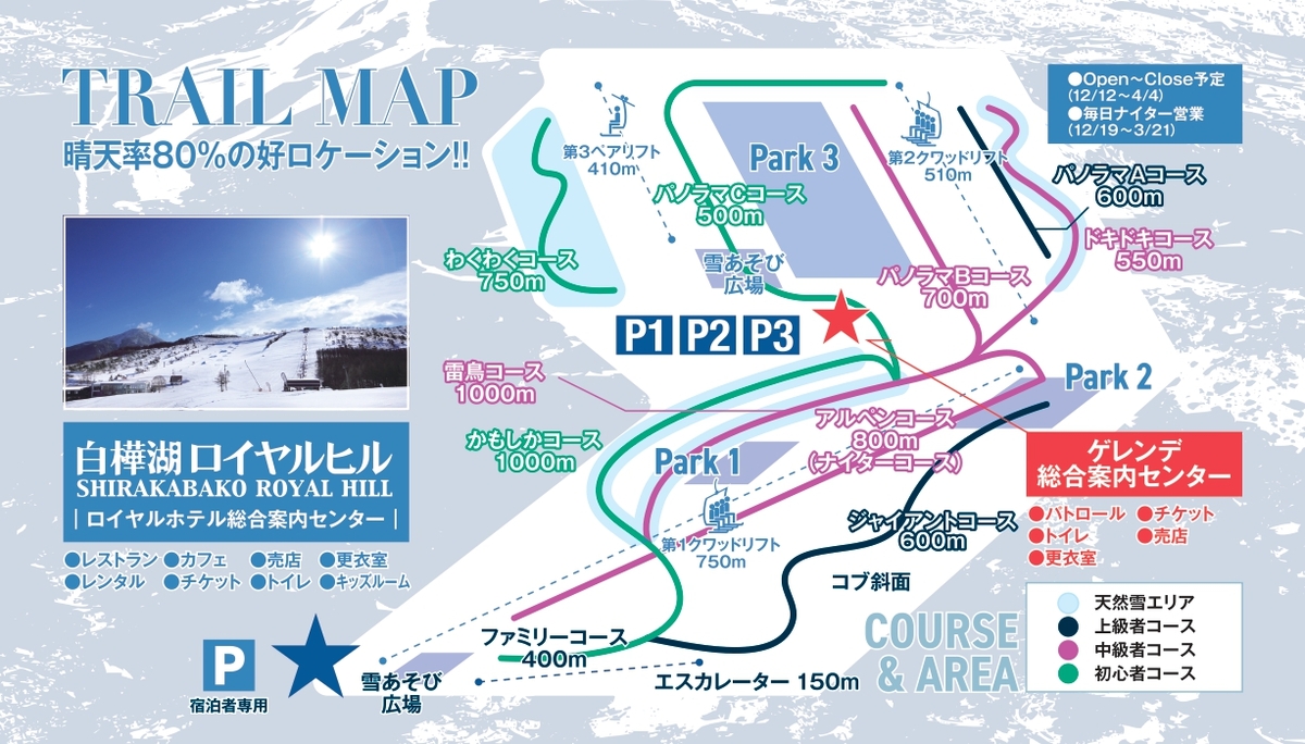 儿童:0~12岁/成人:满13岁※租借滑雪用具时,需要出示可确认姓名和地址的证件