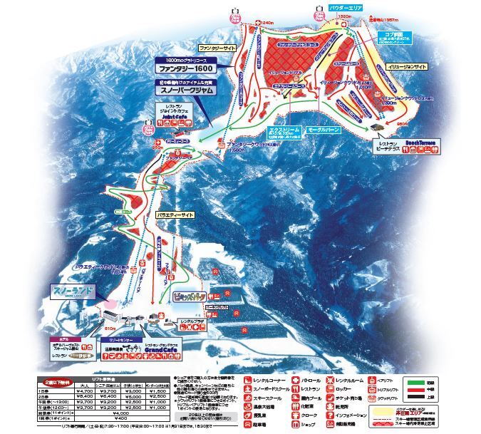 西日本地区最大规模的滑雪场!雪质优良、最长滑行距离达到5,800米。设有适合初学者练习的「Variety site」、能练习平花技巧等受到单板滑雪者喜爱的「Fantasy site」、以及适合高手的拥园内最难雪道的「Illusion site」三大区域,是一座可以亲子同乐、享受单板与双板滑雪乐趣的滑雪场!此外,还有让儿童也能尽情玩乐的「儿童乐园」,非常适合在挑战真正的雪道前进行练习或戏雪。滑雪场直通酒店与温泉,滑雪后的休闲活动也非常丰富。从大阪出发约3小时、从名古屋出发约2小时、从胜山高速收费站出发约20分钟即可到达,交通便利。