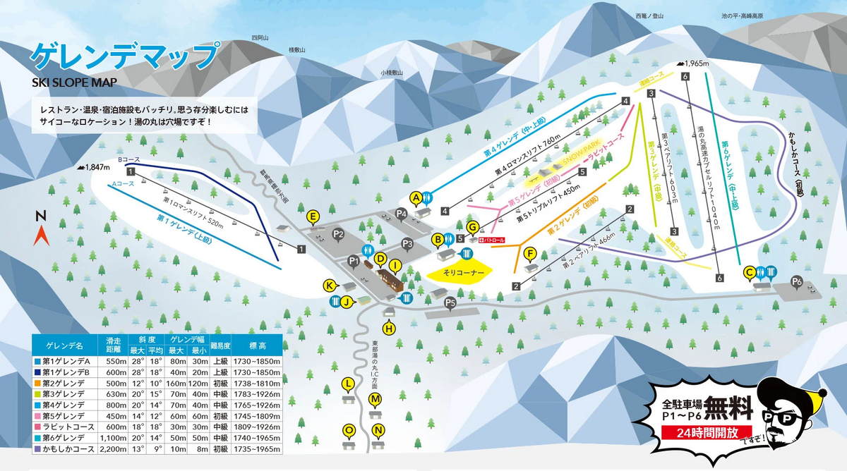 也出售帽子、手套、护目镜。/半天费用可使用时间:上午(8:30-12:30)、下午(12:00-16:00)
